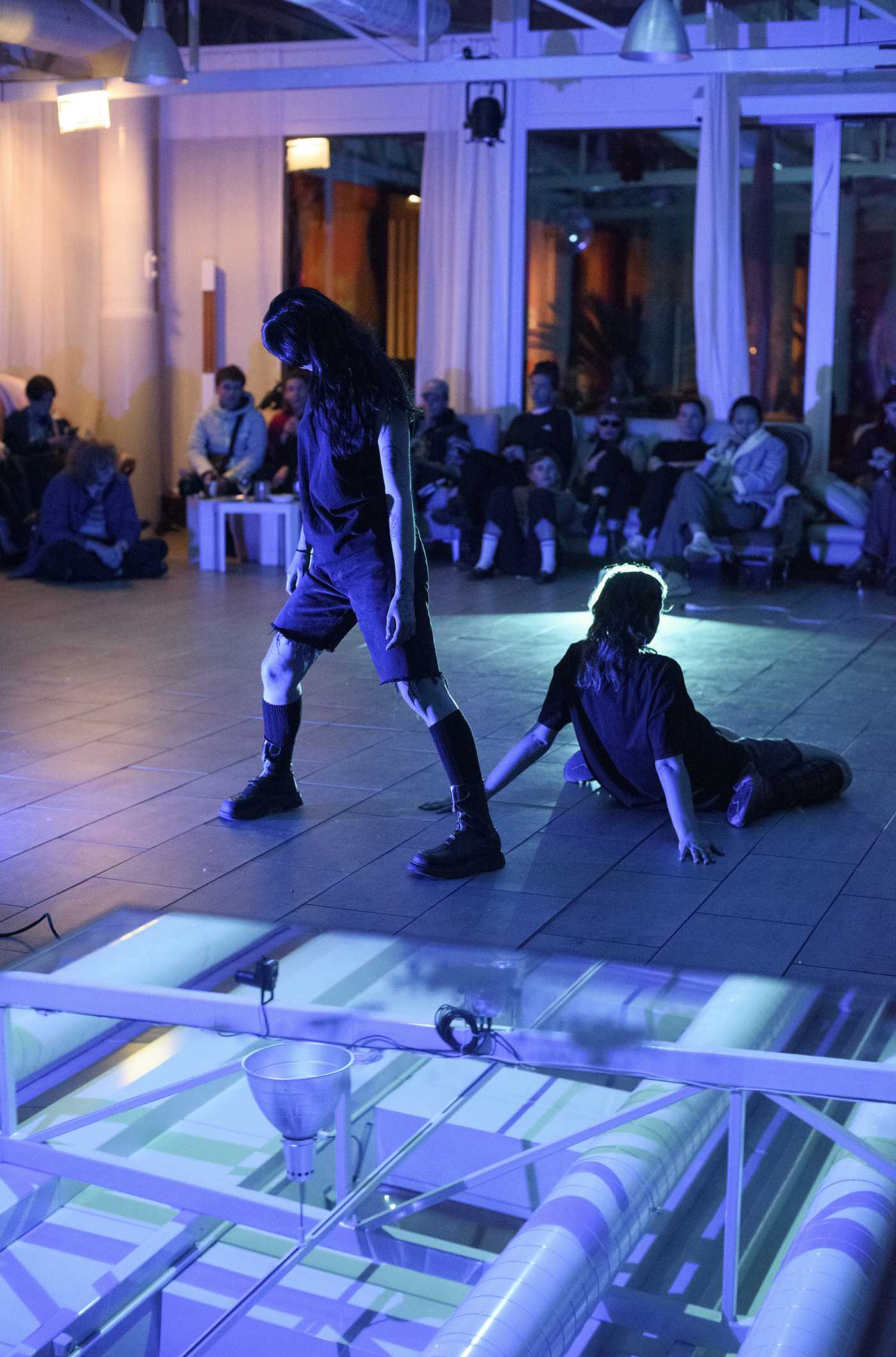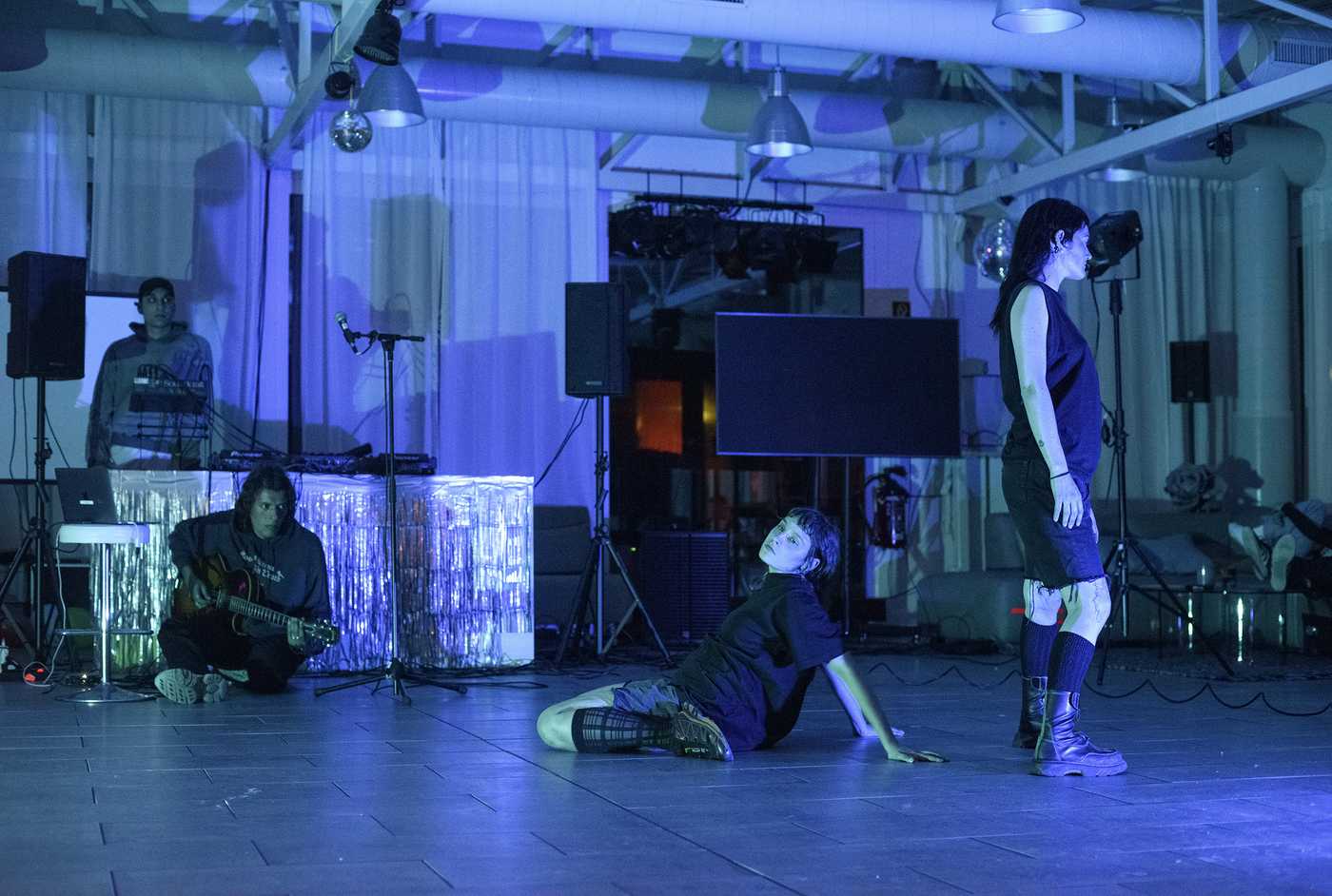 An improvised experiment based on the gestures and postures of gendered and stereotyped virtual avatars and video games, with alternating embodiments of these figures in an exploration of repetitive movements and variations in slowness. Live sound creation and the performers’s movements are self-influencing throughout the performance.